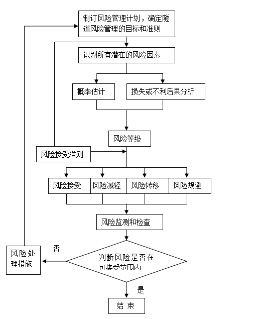 風(fēng)險(xiǎn)評估:對風(fēng)險(xiǎn)進(jìn)行識別、估計(jì)和評價(jià),是辨識其不確定性及評價(jià)其影響程度的過程。隧道工程施工安全風(fēng)險(xiǎn)評估應(yīng)根據(jù)地質(zhì)條件、工程規(guī)模、技術(shù)復(fù)雜程度、施工方法、機(jī)械設(shè)備、施工管理要求等情況,確定評估對象、目標(biāo)和方法。公路隧道工程施工安全風(fēng)險(xiǎn)評估:施工作業(yè)程序分解、施工作業(yè)安全事故辨識。