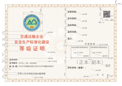十、 交通運輸企業(yè)安全生產(chǎn)標(biāo)準(zhǔn)化等級證明(證書)